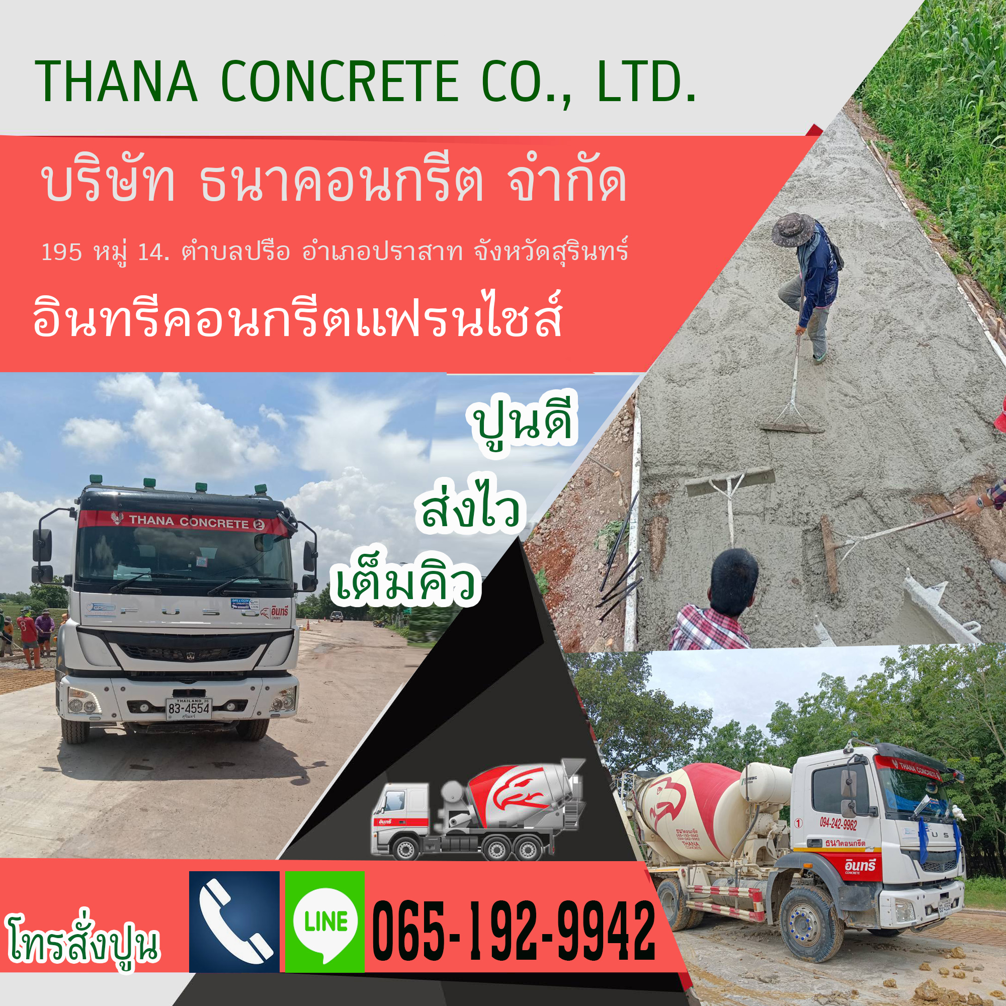 สั่งปูน #คอนกรีตผสมเสร็จสุรินทร์ , #คอนกรีตผสมเสร็จอำเภอปราสาท *โทร: 065-192-9942